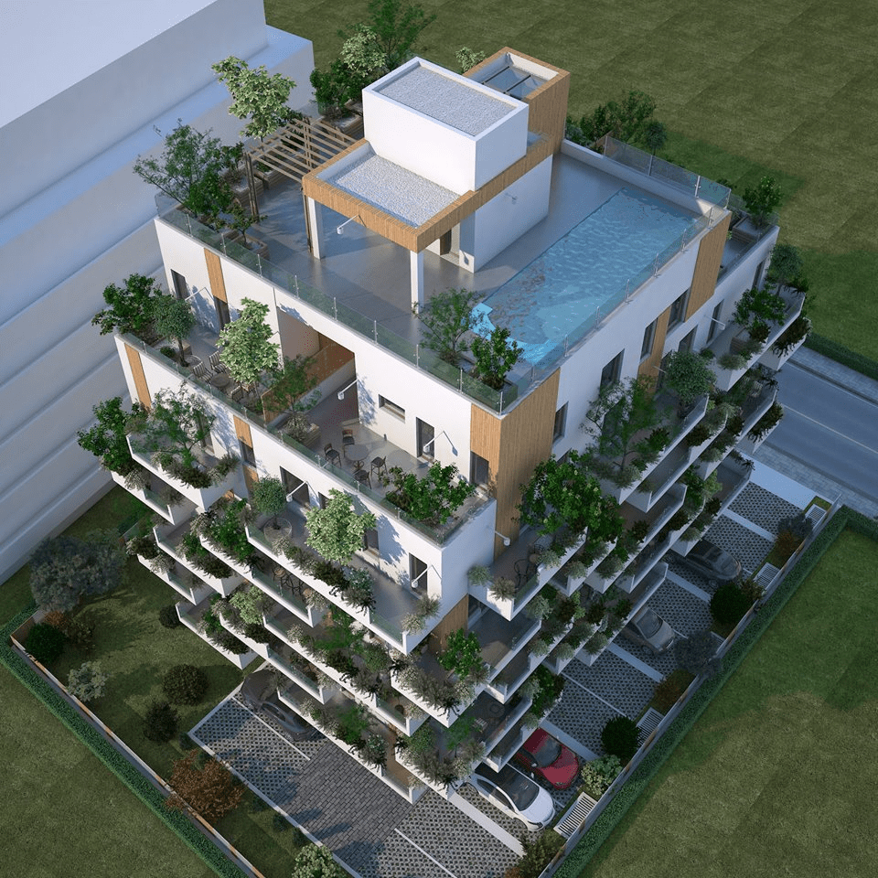 Waldturm este unul dintre singurele blocuri din România care beneficiază de o piscina încălzită pe acoperisul blocului, pomi și vegetații decorative pe fațade.