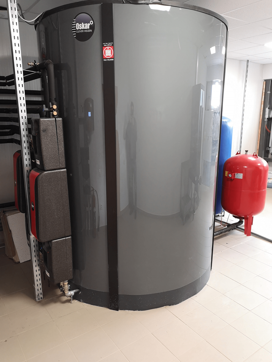 Acumulatorul de caldura OSKAR permite oricărui tip de centrală să funcționeze la randament maxim deoarece energia este stocată aproape fără pierderi în stratul de temperatură corespunzător, până când aceasta va fi utilizată.